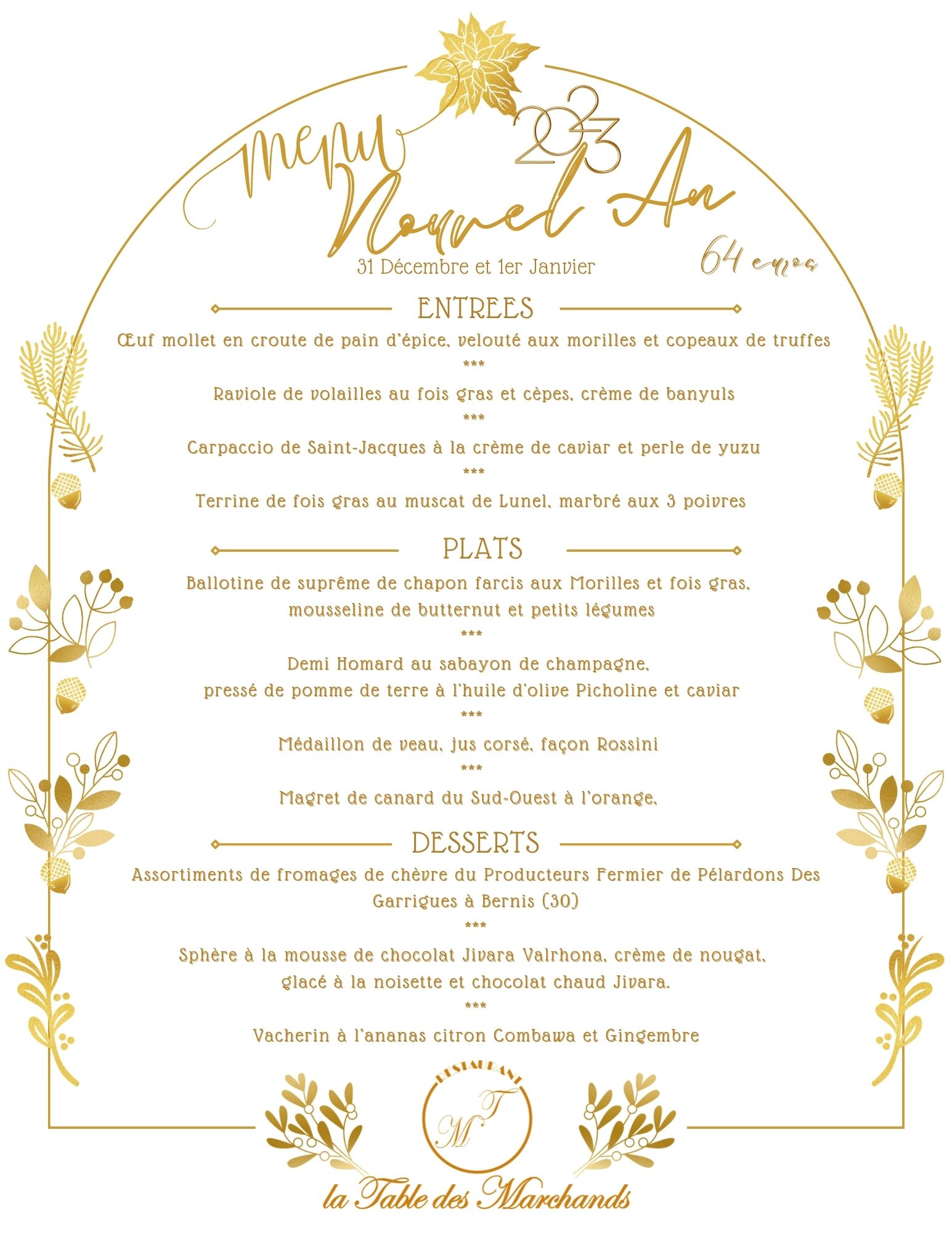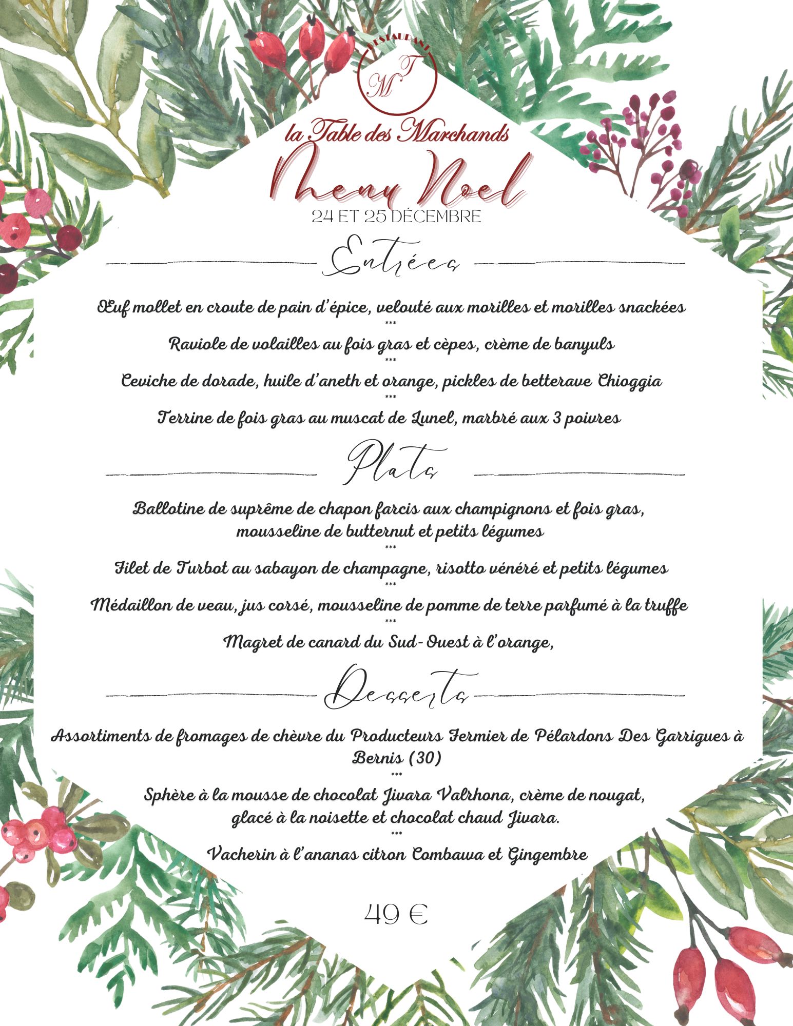 La Table des Marchands e toute sont équipe vous souhaitent de bonnes fêtes de fin d'année.